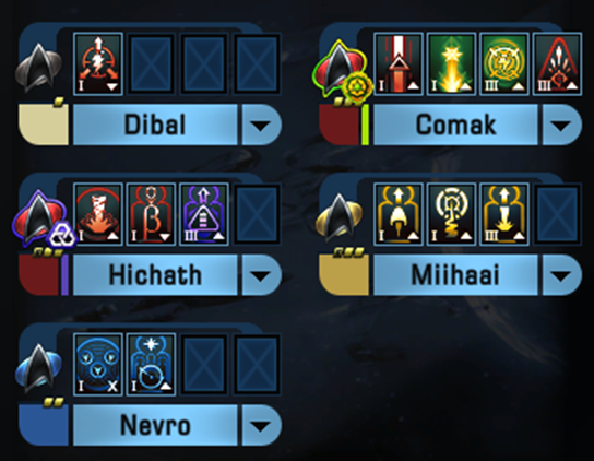 I have not compensated for this risk, however you could by placing Engineering Team II in the Engineering Lieutenant slot. When a subsystem goes offline, clicking Engineering Team cancels it out. Why do I not do this – I don’t notice the power going offline in a busy and fast TFO.