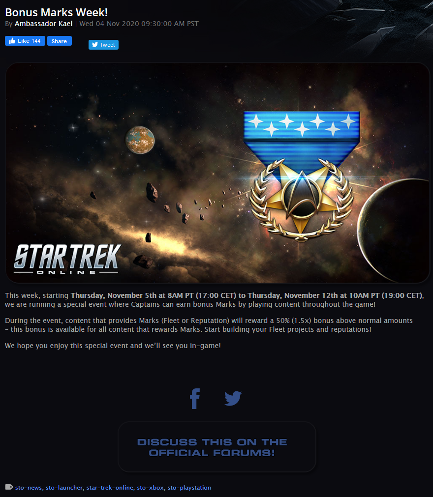 Lastly, my thanks to everyone who has been funneling dilithium and common doffs to the Gamma Fleet Colony and Starbase. I know it is tempting to contribute to the new Epsilon fleet first as the projects there are nice and bite-sized. For now, please continue to treat the Epsilon fleet projects as low hanging fruit and our Gamma Fleet as priority. Oh and here is a link to the Sunday Supplemental where I talk about how to contribute to different fleets across the Fed Armada. Sunday Supplemental #16 Contributing to Other Fleet Holdings in the Armada