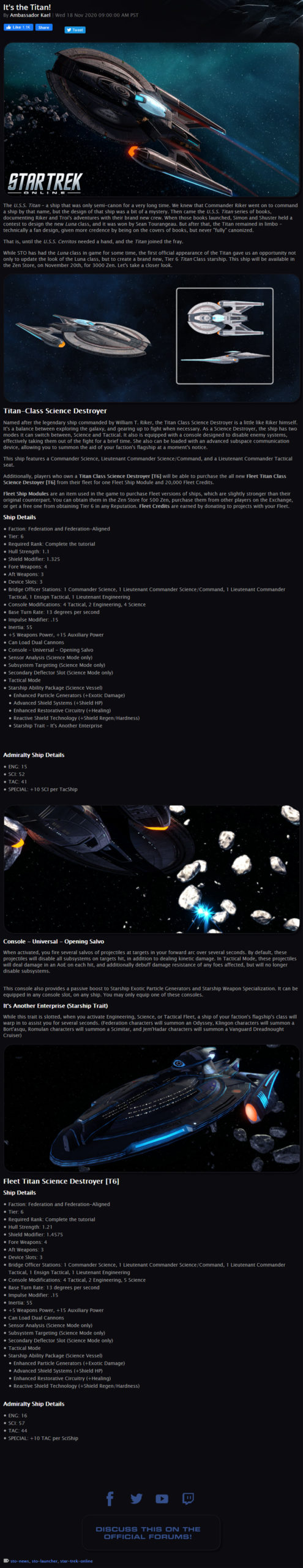 So…. The Titan release had a few hiccups as they were accidentally made available to KDF characters. See official tweet: