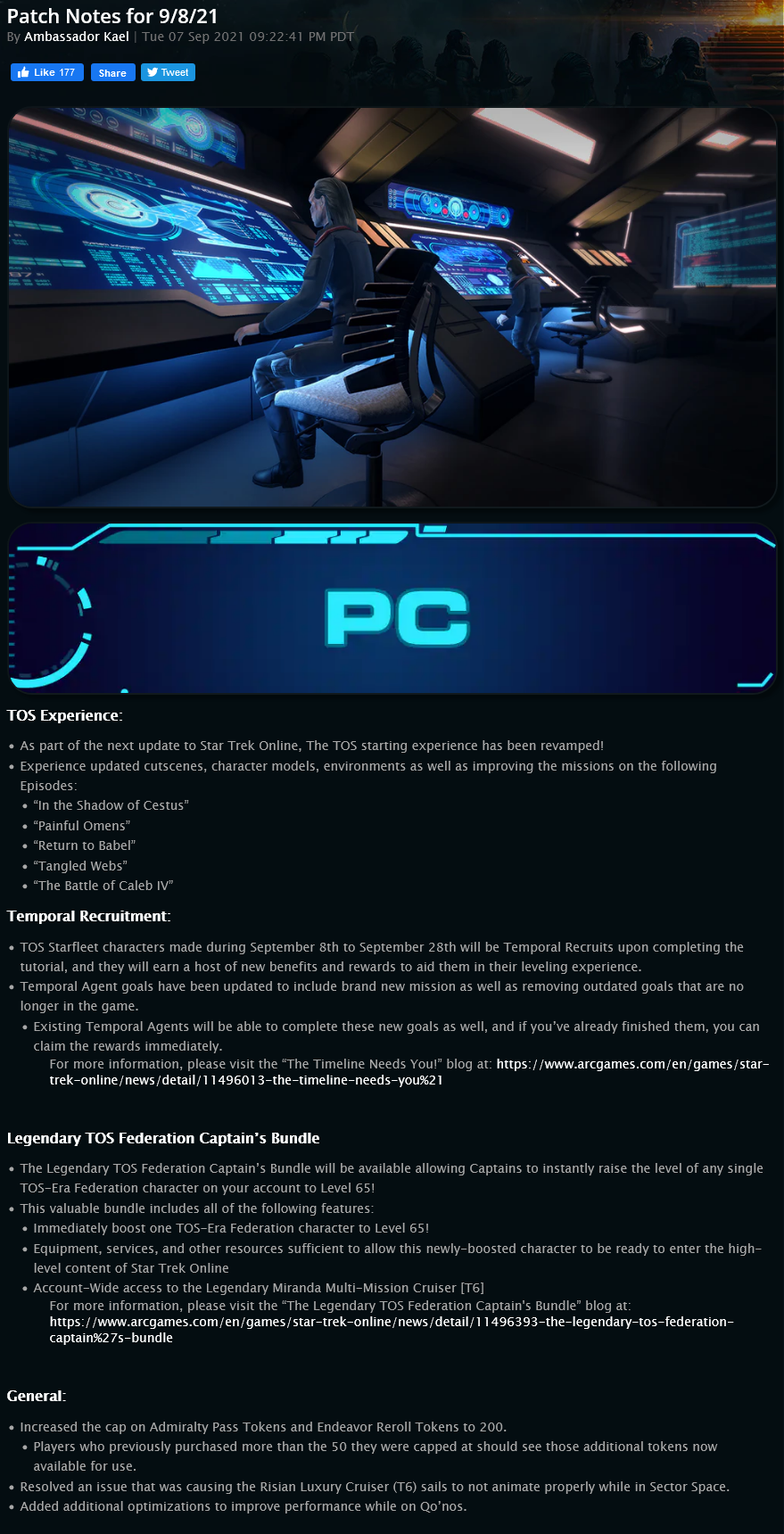September 13, 2021 at 2:15 am #434190Need to say, the last week of the temporal event has been a blast and love seeing everyone getting a TOS character! I sure as heck love mine! As for the new fleet name.. could be something to be discussed!