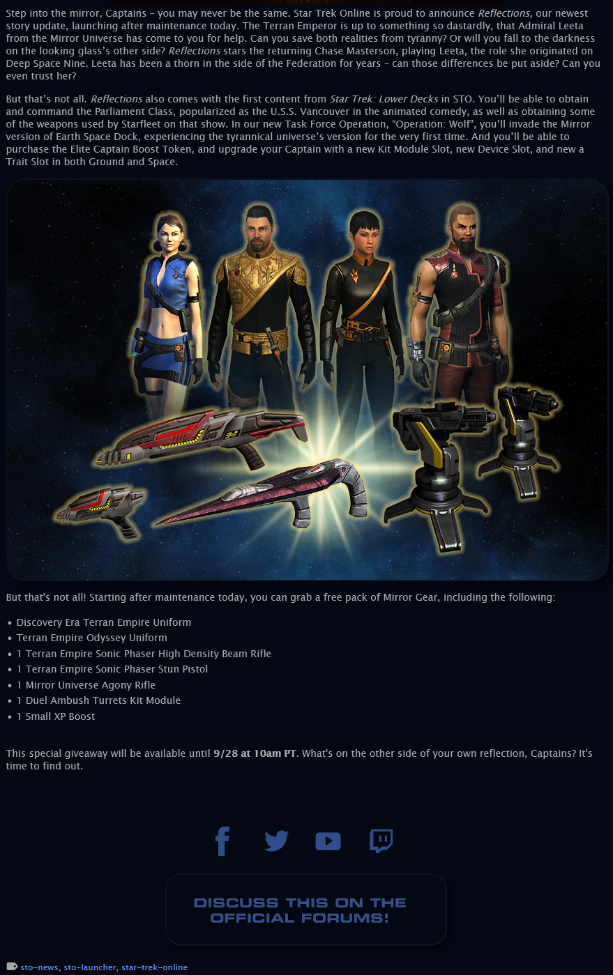 Important notice: As of Feb. 15th 2022, STO and Neverwinter will no longer be supporting Windows 7 and Direct3D Feature Level 10. Full details below.