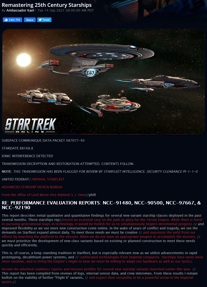 Your entries are submitted and now its time to vote for the name of our newest fleet! All 44th Fleet members are allowed a vote even if you only play KDF. Here is the Link to the Poll. The poll will close Sunday, Sept. 26th so be sure to vote before then!