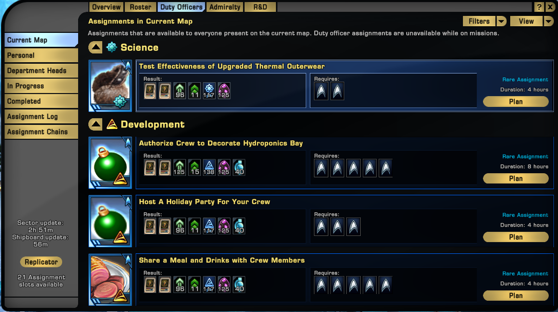 December 20, 2021 at 4:24 pm #435665Thank you for the update. I like to add that on your faction main hub (ESD or Qo’nos) and on both the academies are some Winter Event Doff assignments as well.